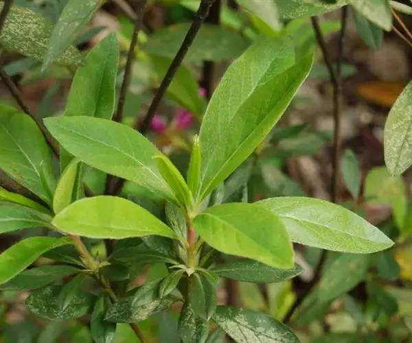 半常绿灌木,高1.5-2.5米;枝开展,淡灰褐色,被淡棕色糙伏毛。叶薄革质,椭圆状长圆形至椭圆状披针形或长圆状倒披针形,长2-5(-7)厘米,宽1-2.5厘米,先端钝尖,基部楔形,边缘反卷,全缘,上面深绿色,初时散生淡黄褐色糙伏毛,后近于无毛,下面淡绿色,被微柔毛和糙伏毛,中脉和侧脉在上面下凹,下面显著凸出;叶 柄长3-6毫米,密被棕褐色糙伏毛。