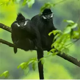 白头叶猴(学名:Trachypithecus leucocephalus ):因以树叶为食而得名。尾长,适于树栖;体型纤细,无颊囊。该物种体长为50-70厘米,尾长60-80厘米,体重8-10千克,与黑叶猴在形态和体型大小上都差不多,头部较小,躯体瘦削,四肢细长,尾长超过身体长度。它的体毛也是以黑色为主,与黑叶猴不同的是头部高耸着一撮直立的白毛,形状如同一个尖顶的白色瓜皮小帽。