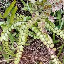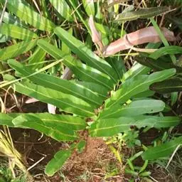 植株高10-30厘米。根状茎短而直立,被黑褐色披针形鳞片。叶簇生;柄长4-10厘米,粗约1毫米,栗色,基部被鳞片,向上光滑,有光泽;叶片线状披针形,先端渐尖,基部几不变狭,长6-23厘米,宽2-3厘米,一回羽状;羽片10-30对,对生或互生,平展,具极短的柄,相距约5毫米,彼此接近,若叶轴先端延长成鞭状,则顶部叶片便逐渐远离,中部羽片长1-1.5厘米,基部宽5-8毫米,为半开式,先端急尖或圆钝,基部不对称,上侧截形,上凹入,上缘2-5浅裂,下缘和内缘直而全缘;裂片近长方形,全缘或稍呈波状;基部数对羽片与中部羽片同形而略缩小,且略反折,顶部羽片与中部的同形而渐次缩小,顶生羽片近扇形,上缘深裂,基部楔形。叶脉多回二歧分叉,两面均明显。叶干后纸质,淡褐色或淡棕绿色,两面均光滑无毛;叶轴栗色,光滑,有光泽,先端常延伸成鞭状;能着地生根,行无性繁殖。孢子囊群每羽片2-5枚,横生于裂片先端;囊群盖圆形或长圆形,上缘平直,膜质,棕色,全缘,宿存。孢子周壁具颗粒状纹饰,处理后周壁易脱落。染色体2n=60。 [1-2]