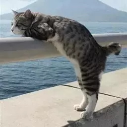 先将一铁环(或其他环状物体)立着放在地板上,猫主站在铁环的一侧,猫站在另一侧,在不断发出“跳”的口令时向猫招手,当猫偶而走过铁环时要立即给予食物奖励,但猫绕过铁环走过来,则应轻声地训斥。在食物的引诱下,猫便会在主人发出“跳”的口令之后,走过铁环。每走过一次,就要奖励一次。如此反复训练后,在没有食物奖励的情况下,猫也会在“跳”的口令声中走过铁环。然后逐渐升高铁环,刚开始,主人要用食物在铁环内引诱猫,并不断发出“跳”的口令,每跳过一次即给予食物奖励,若从铁环下面走过来,则要加以训斥。最后,在没有食物奖励的情况下,猫也能跳过离地面30~60厘米高的铁环。