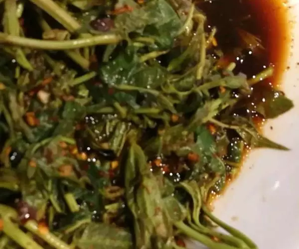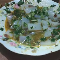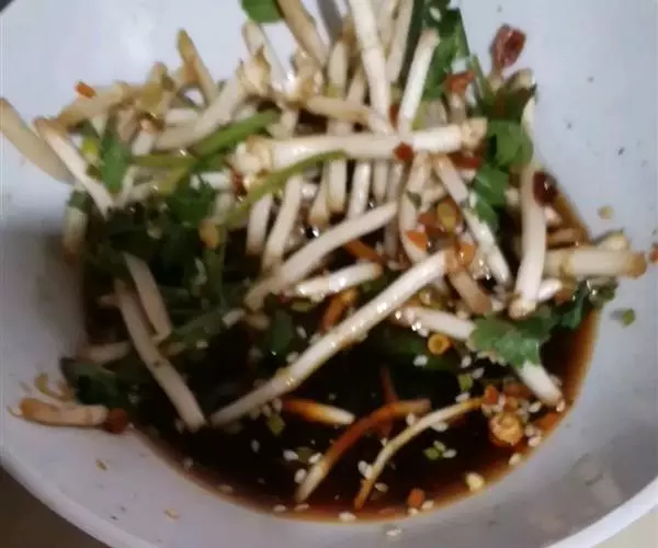 辅料:大蒜3瓣、酱油20克、辣椒油40克、糖5克、香油5克、花椒油5克、醋5克、适量盐。
