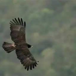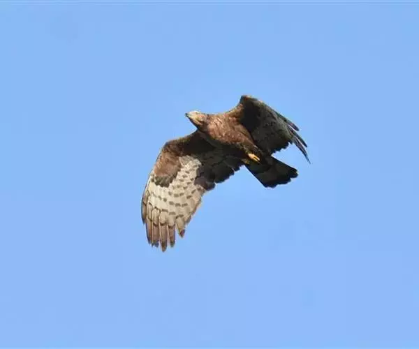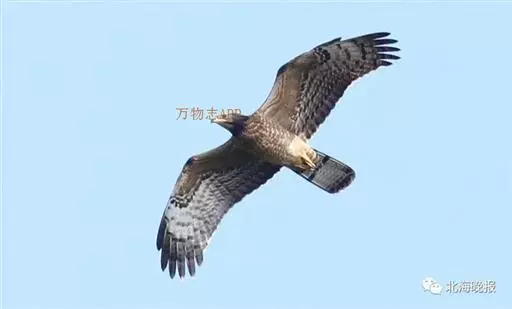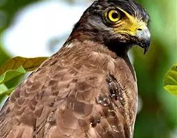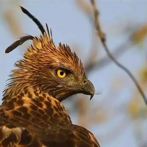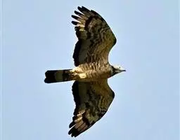 凤头蜂鹰(学名:Pernis ptilorhynchus):又称东方蜂鹰,共有6个亚种。体长为50-62厘米,体重800-1200克。头后及枕部羽毛狭长,形成短羽冠,常明显露出。上喙边端具弧形垂突,适于撕裂猎物吞食;基部具蜡膜或须状羽;翅强健,翅宽圆而钝,扇翅及翱翔飞行,扇翅节奏较隼科慢;跗跖部大多相对较长,约等于胫部长度。雌鸟显著大于雄鸟。具对比性浅色喉块,缘以浓密的黑色纵纹,并常具黑色中线。飞行时特征为头相对小而颈显长,两翼及尾均狭长。尤喜食蜂类,主要以黄蜂、胡蜂、蜜蜂和其他蜂类为食,也吃其他昆虫和昆虫幼虫,通常栖息于密林中,一般筑巢于大而多叶的树上,繁殖期为4-6月。每窝产卵约2枚。分布于中国、俄罗斯的西伯利亚南部至萨哈林岛,日本和朝鲜,越冬于菲律宾、马来西亚和印度尼西亚,部分留居于印度、缅甸、泰国、马亚西亚,非律宾和印度尼西亚。