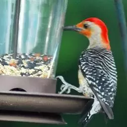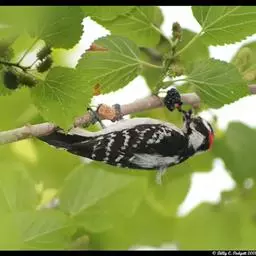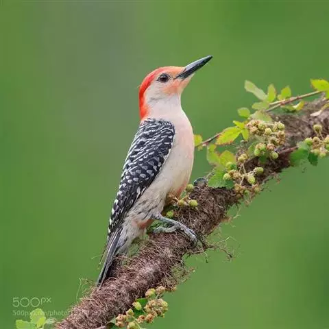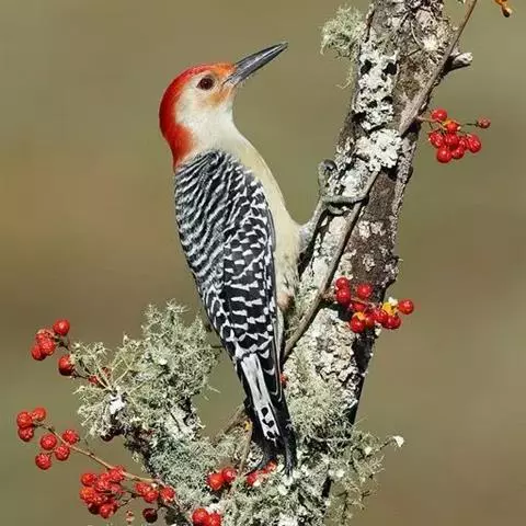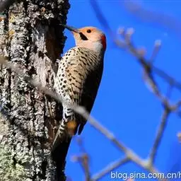红腹啄木鸟成年雄鸟头项有红帽,翅膀和上体是黑白相间的斑纹状羽毛,腹部有一片红羽毛。头亦大,但颈较长,…