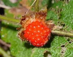 覆盆子为灌木,高1—2米;枝褐色或红褐色,幼时被绒毛状短柔毛,疏生皮刺。小叶3-7枚,长卵形或椭圆形,…
