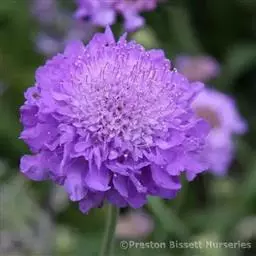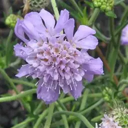 紫盆花为1-2年生草本花卉。莳养者可在第一批种子成熟后随采随播,精心养护,次年早春开花。也可将种子贮藏起来,待到次年春暖花开时播种,这样植株便可在9-10月开花。