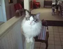 英国长毛猫大胆好奇,但非常温柔,适应能力也很强,不会因为环境的改变而改变,也不会乱发脾气、更不会乱吵乱叫,它只会尽量爬到比较高的地方,低着头瞪着那双圆圆的大眼睛面带微笑地俯视着你,就好像《爱丽丝梦游仙境》中提到的那只叫做“路易斯”的猫一样,不用语言,只用那可爱的面部表情就抓住了你的心,再也无法改变你对它的爱.