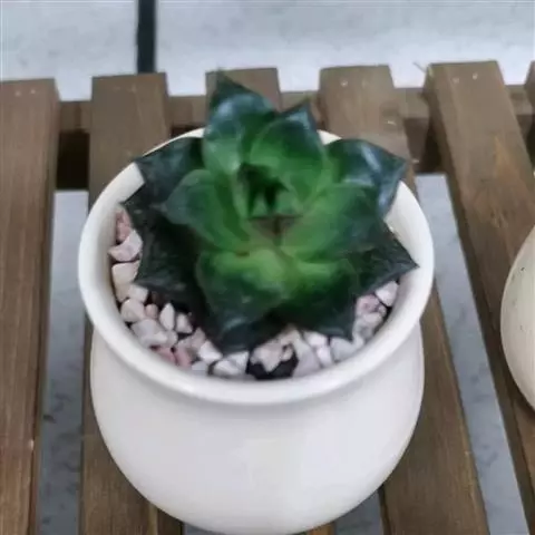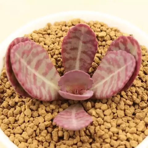 紫珍珠是景天科石莲花属的多年生肉质草本植物。植株中小型;叶片肉质,匙形,呈莲座状紧密排列;叶片粉紫色,…