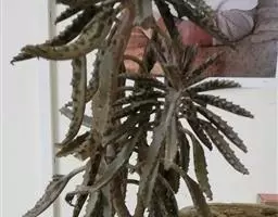 棒叶落地生根是景天科、落地生根属植物。茎直立、粉褐色。叶圆棒形,上表面有沟、粉色,有红褐斑。…