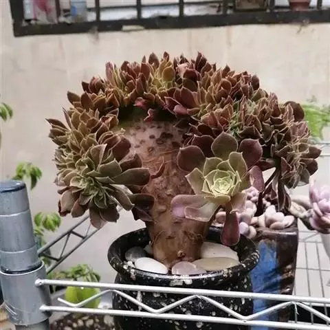 魅惑之宵是景天科拟石莲花属的多肉植物。魅惑之宵叶片莲座型密集排列,底座粗壮,茎干随着生长而逐渐长粗,…