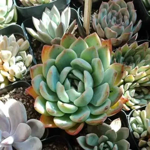薄叶蓝鸟 叶片蓝绿色,叶尖红色,带粉,花型紧凑,非常漂亮。原产于墨西哥,现世界各地均有栽培。