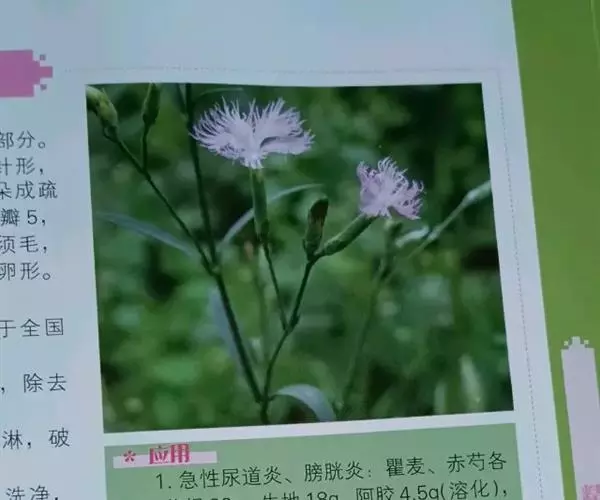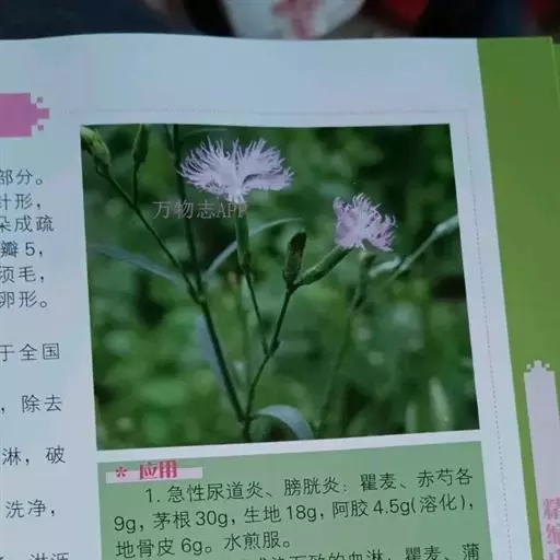 全草入药,有清热、利尿、破血通经功效 瞿麦 。