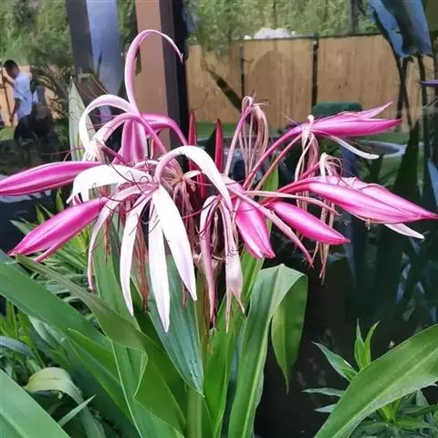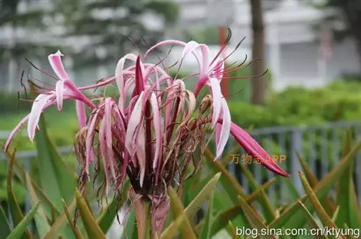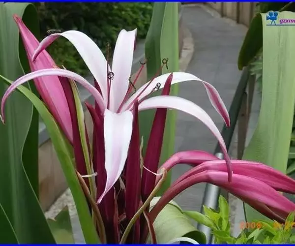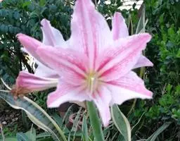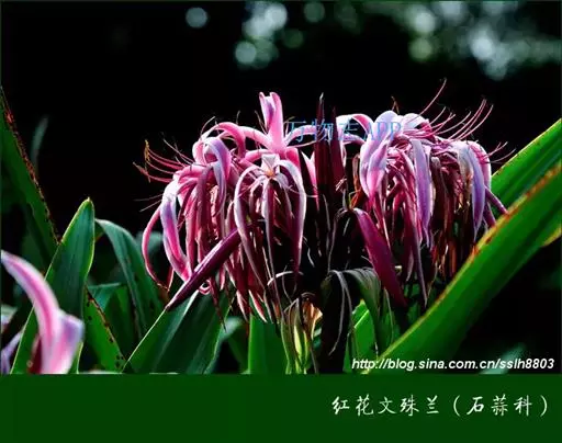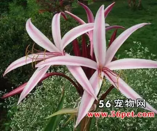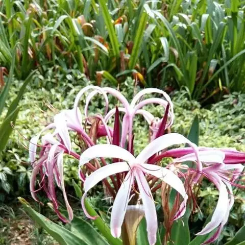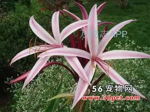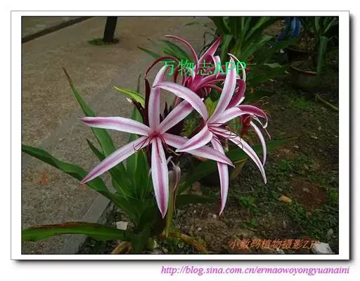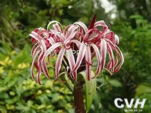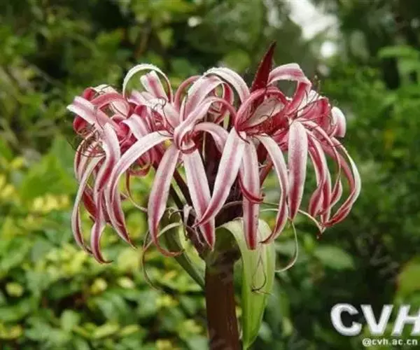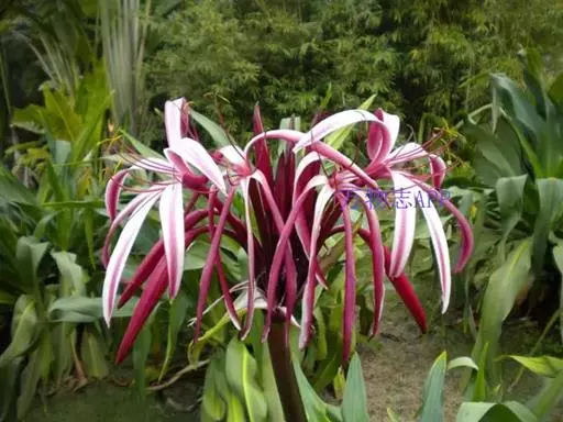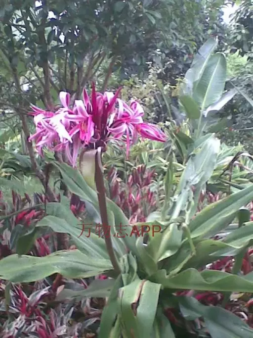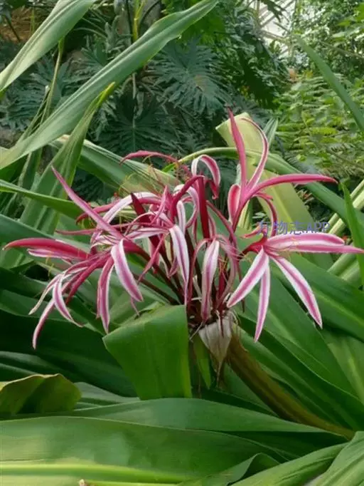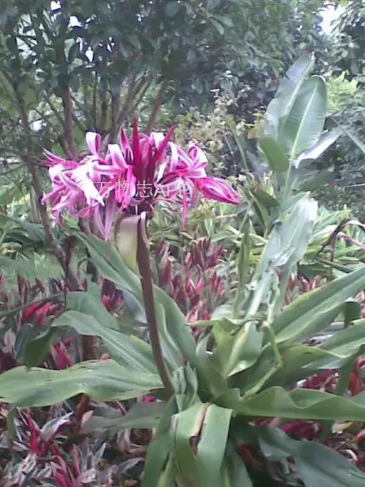红花文殊兰又名西南文殊兰,拉丁文名Crinum latifolium L.多年生粗壮草本。分布于广西、贵州、云南。常生于河床、沙地。越南至印度及马来西亚也有分布。