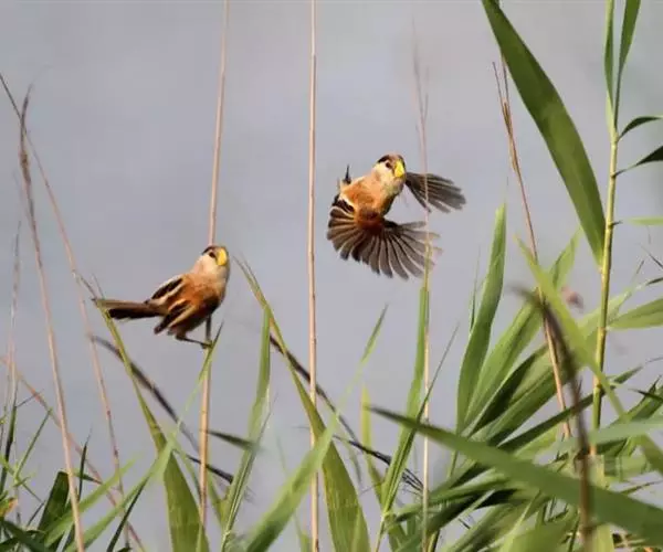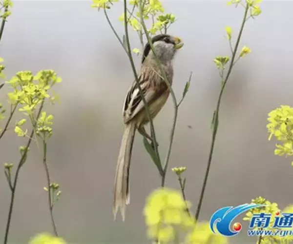2018年7月4日,在山东青岛白沙河入海口湿地,两只“鸟中熊猫”震旦鸦雀幼鸟在成鸟带领下开始练飞觅食,标志着青岛入海口湿地成为震旦鸦雀理想的栖息地,种群数量正逐步增加 。