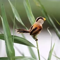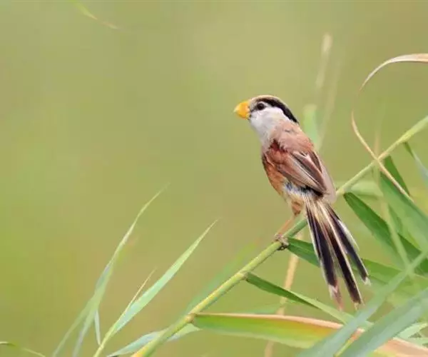 震旦鸦雀是鸟类中的“模范夫妻”。在长江口地区,它们每年4月开始筑巢,雌雄共同筑巢。它们会用坚硬的嘴巴撕裂芦苇叶,以叶片中纤维为建材,将纤维丝缠绕在2-5根芦苇上,然后一圈一圈地绕成巢样。