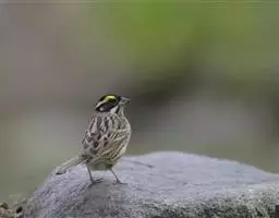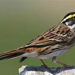 黄眉鹀是雀形目鹀科鹀属鸟类,体型中等偏小。雄鸟头部主要为黑色,冠纹白色,眉纹前段黄色而后段白色,…