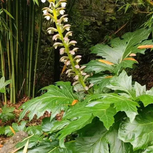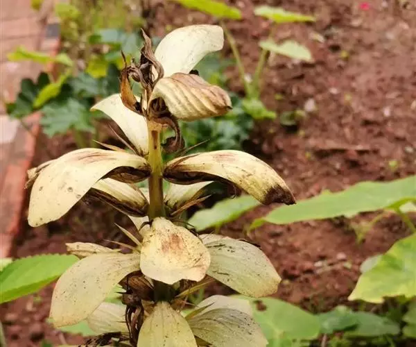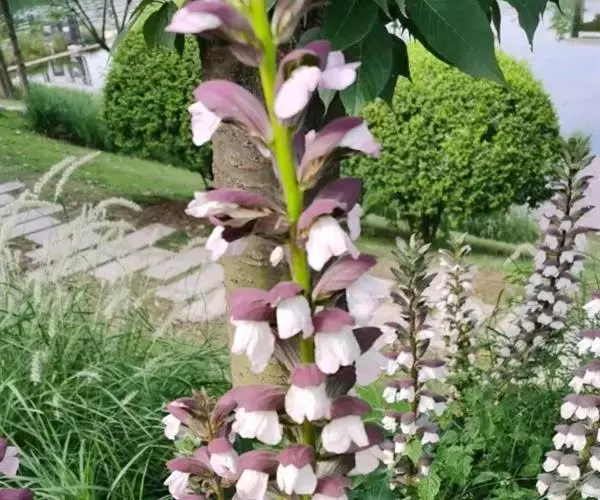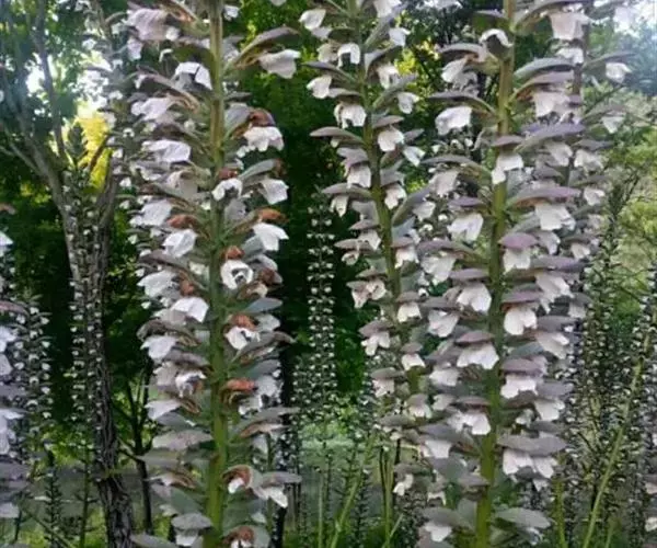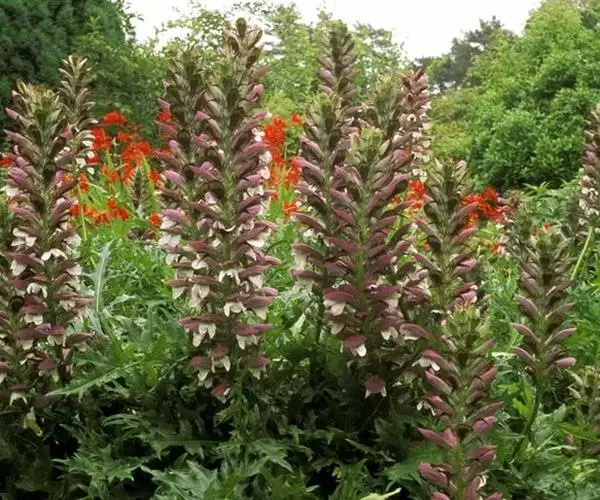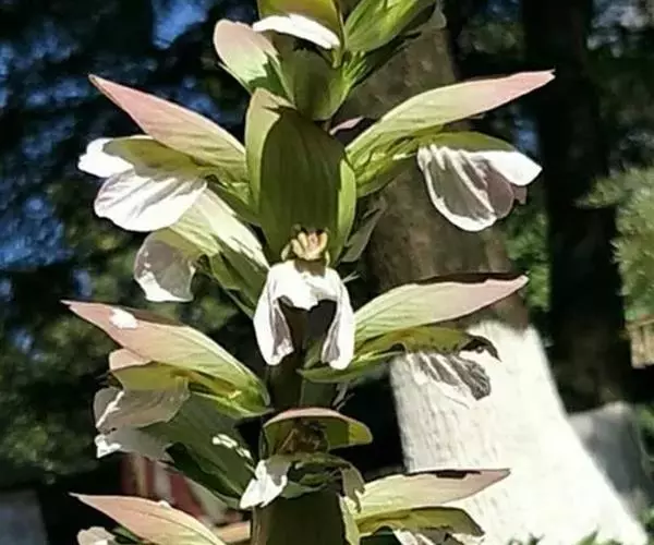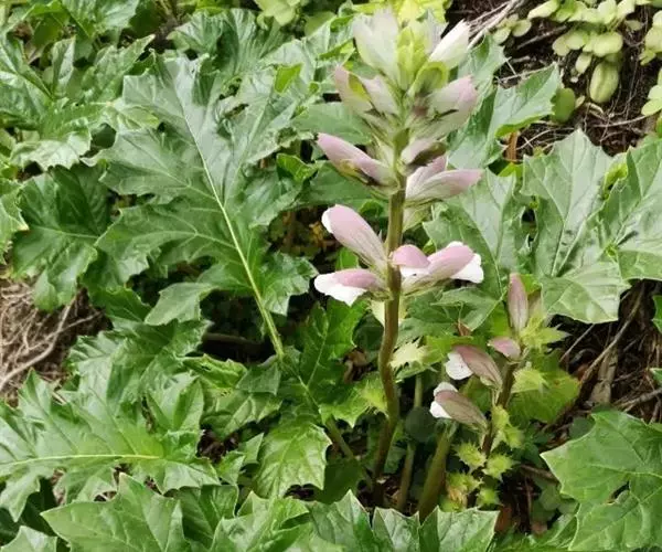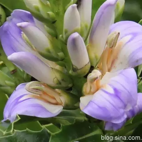 常绿直立亚灌木,丛生,株高50~90cm,叶对生,羽状分裂或浅裂。花絮蕙状,顶生,苞片大,小花多数,白至褐红色,形似鸭嘴,花冠2唇,上唇极小而成单唇状,下唇大,伸展。蒴果。花期春季,果期夏季。