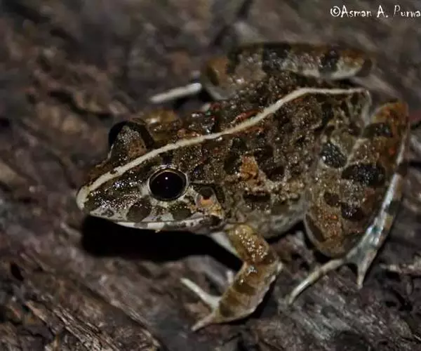 黑斑侧褶蛙是无尾目蛙科侧褶蛙属两栖动物,又名为刺雄齿突蟾、黑青蛙。 头长大于头宽;吻部略尖,吻端钝圆,…