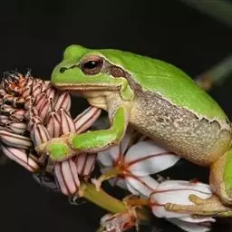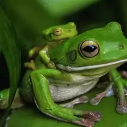 树蛙是树蛙科两栖动物的统称。树蛙体中等或大,一般雄蛙吻端斜尖,雌蛙吻端高钝;舌后端缺刻深,梨骨齿发达,…