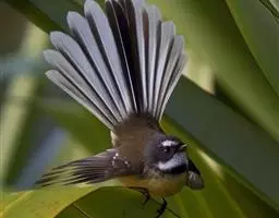 白眉扇尾鹟:体长17厘米,是一种中等体型的灰色扇尾鹟。色彩独特。宽宽的眉纹及前额白色,尾有白色宽边…