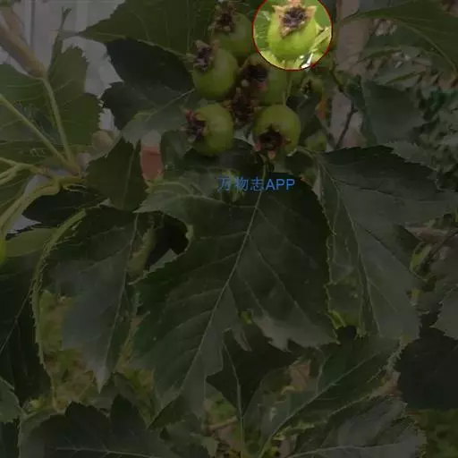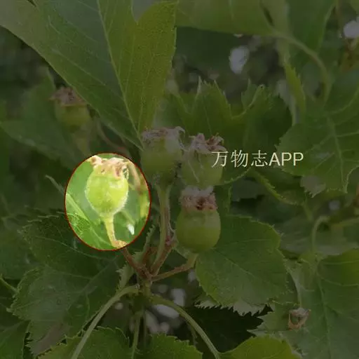 叶坚纸质,近圆形,长6-9厘米,宽4.5-8厘米,顶端急尖,基部圆形或浅心形,两侧稍不对称;边缘锯齿不内弯,背面脉腋上和主脉及侧脉下段的两侧有少量卷曲柔毛,叶脉在两面均显著,侧脉6-7对,上段常分叉。果熟时紫褐色,柱状长圆形,长2.5-3厘米,顶端有短喙。该变种有别于其他变种的特点是叶为坚纸质,叶脉发达显著。