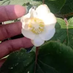 软枣猕猴桃(学名:Actinidia arguta (Sieb. & Zucc) Planch. ex Miq.)是猕猴桃科、猕猴桃属大型落叶藤本植物;小枝基本无毛或幼嫩时星散地薄被柔软绒毛或茸毛,叶膜质或纸质,卵形、长圆形、阔卵形至近圆形,顶端急短尖,基部圆形至浅心形,背面绿色,花序腋生或腋外生,苞片线形,花绿白色或黄绿色,芳香,萼片卵圆形至长圆形,花瓣楔状倒卵形或瓢状倒阔卵形,花丝丝状,花药黑色或暗紫色,长圆形箭头状,果圆球形至柱状长圆形,长2-3厘米,成熟时绿黄色或紫红色。种子纵径约2.5毫米。
