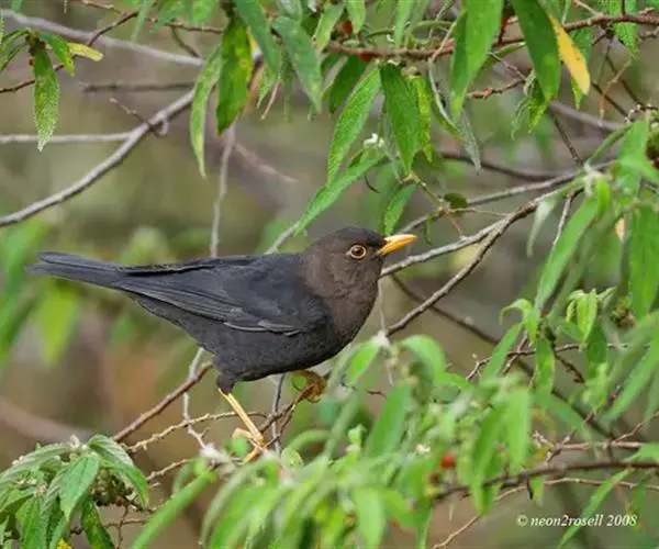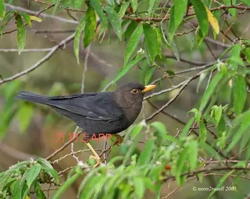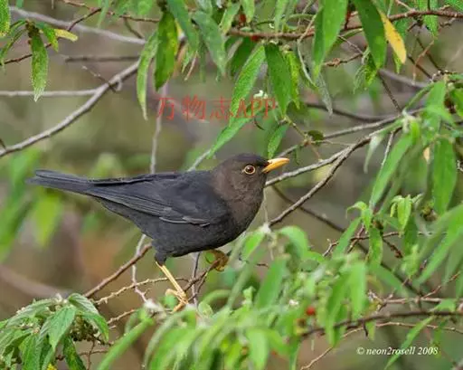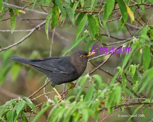 乌鸫(学名:Turdus merula):是鸟纲、鸫科的鸟类。体重55-126克,体长210-296毫米;雄性的乌鸫除了黄色的眼圏和喙外,全身都是黑色。雌性和初生的乌鸫没有黄色的眼圏,但有一身褐色的羽毛和喙。虹膜褐色,鸟喙橙黄色或黄色,脚黑色。
