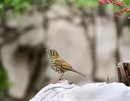 白眉歌鸫,是雀形目鸫科鸫属鸟类。体型略小并具有褐色斑点的歌鸫,上体橄榄褐色,眉纹白色,脸部斑驳,…