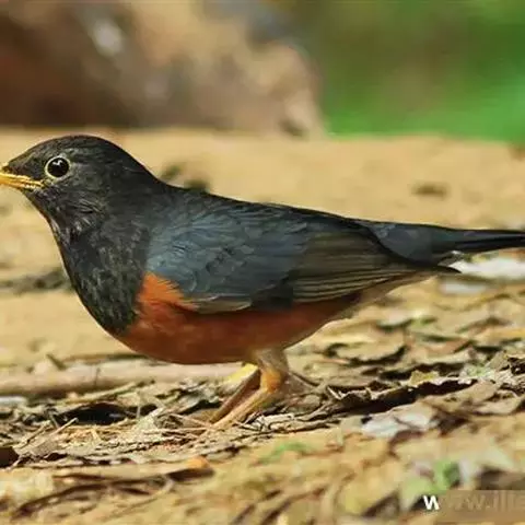灰头鸫:中型鸟类,体长23-27厘米。整个头、颈和上胸褐灰色,两翅和尾黑色,上、下体羽栗棕色。…