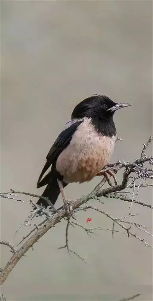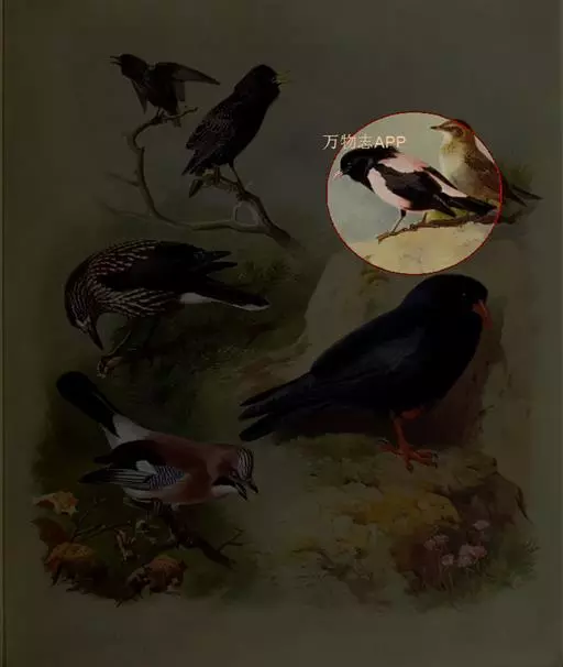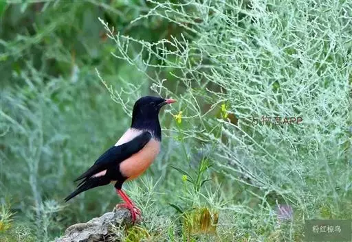 粉红椋鸟:中等体型,成鸟体长19-22厘米,体重60-73克,飞羽、尾羽为亮黑色,雌鸟与雄鸟毛色相似,…