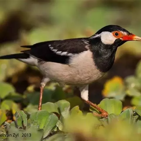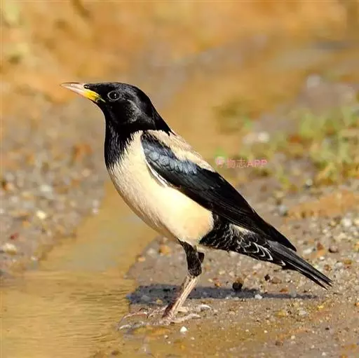 斑椋鸟:是中等体型的黑白色椋鸟,体长24厘米。头顶、头侧、翼斑、腰及腹部白色,喉、胸及上体余部黑色,…
