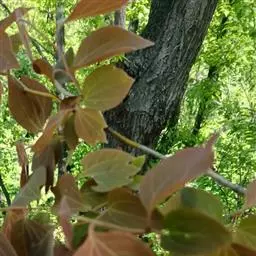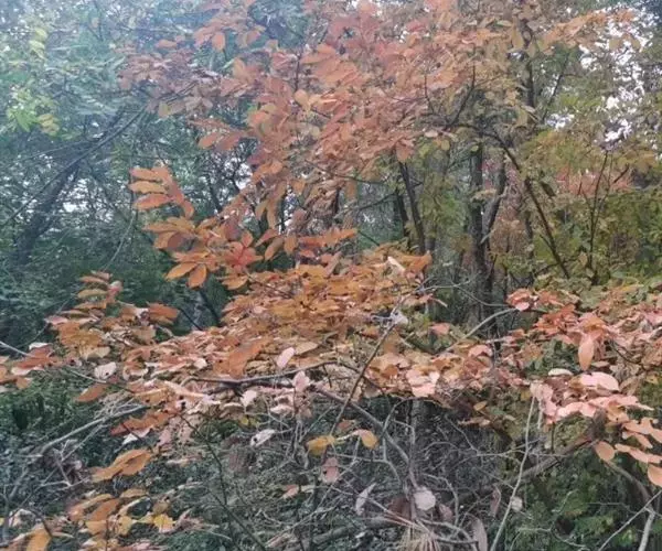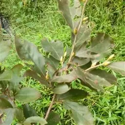 落叶灌木或小乔木,高可达8米;树皮平滑,灰色或灰白色。冬芽(混合芽)长角锥形,长约1.5厘米,直径4毫米,芽鳞裸露部分红色,幼枝条白黄色,初有褐色毛,后脱落成无毛。叶互生,宽椭圆形、椭圆形、倒卵形到狭倒卵形,长4-9厘米,宽2-4(6)厘米,上面深绿色,下面淡绿色,被白色柔毛,纸质,羽状脉,侧脉每侧(4)5-6条;叶枯后不落,翌年新叶发出时落下。