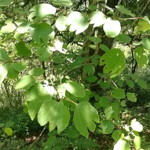 山胡椒(学名:Lindera glauca (Sieb. et Zucc.) Bl)是樟科、山胡椒属落叶灌木或小乔木,高可达8米;树皮平滑,冬芽长角锥形,叶互生,宽椭圆形、椭圆形、倒卵形到狭倒卵形,纸质,羽状脉,伞形花序腋生,总梗短或不明显,雄花花被片黄色,椭圆形,雌花花被片黄色,椭圆或倒卵形,子房椭圆形,柱头盘状;花梗熟时黑褐色;花期3-4月,果期7-8月。