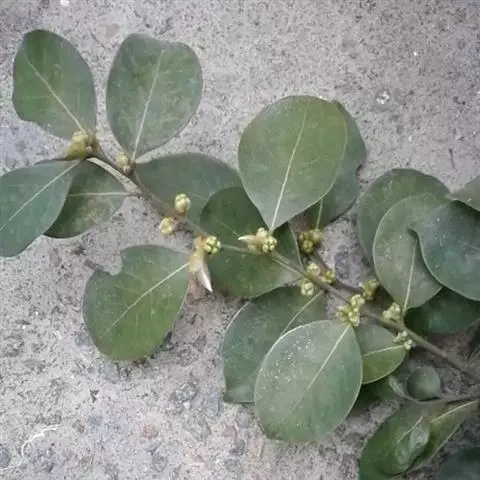 伞形花序腋生,总梗短或不明显,长一般不超过3毫米,生于混合芽中的总苞片绿色膜质,每总苞有3-8朵花。雄花花被片黄色,椭圆形,长约2.2毫米,内、外轮几相等,外面在背脊部被柔毛;雄蕊9,近等长,花丝无毛,第三轮的基部着生2具角突宽肾形腺体,柄基部与花丝基部合生,有时第二轮雄蕊花丝也着生一较小腺体;退化雌蕊细小,椭圆形,长约1毫米,上有一小突尖;花梗长约1.2厘米,密被白色柔毛。雌花花被片黄色,椭圆或倒卵形,内、外轮几相等,长约2毫米,外面在背脊部被稀疏柔毛或仅基部有少数柔毛;退化雄蕊长约1毫米,条形,第三轮的基部着生2个长约0.5毫米具柄不规则肾形腺体,腺体柄与退化雄蕊中部以下合生;子房椭圆形,长约1.5毫米,花柱长约0.3毫米,柱头盘状;花梗长3-6毫米,熟时黑褐色;果梗长1-1.5厘米。花期3-4月,果期7-8月。