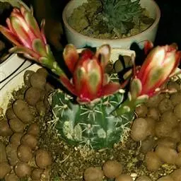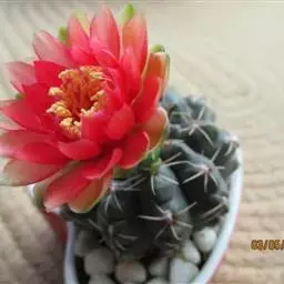 绯牡丹(学名:Gymnocalycium mihanovichii (Frič ex Gürke) Britton & Rose)是仙人掌科裸萼球属植物。多年生肉质。茎扁球形,直径3-4厘米,鲜红、深红、橙红、粉红或紫红色,具8棱,有突出的横脊。成熟球体群生子球。刺座小,无中刺。花细长,着生在顶部的刺座上,漏斗形,粉红色,花期春夏季。果实细长,纺锤形,红色。