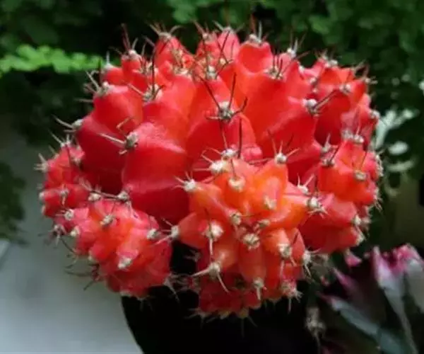 绯牡丹是仙人掌植物中最常见的红色球种,因其小巧玲珑,多与山吹、月兔儿或雪光等搭配在一起盆栽,用来装饰居室环境,温室可成片栽植。