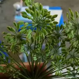 留种白芷6-7月抽苔开花、结籽,8月种子陆续成熟。因主茎顶端种子形成的植株易提前开花,其根常不能人药,而主茎花序下部以及二、三级花序枝结的种子一般不饱满。因此采种时,应当选采主茎花序中部一级枝上结的种子。生长较好的母株,选有关部位上的种子,播后出苗率高,成活率也最高,种后抽苔率低,因此尽量选采生长较好的母株上主茎花序中部一级枝上结的种子。每亩种子田可收获种子120-150kg。7-8株所产的种子即可供一亩地播种之用。