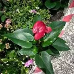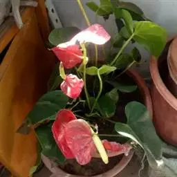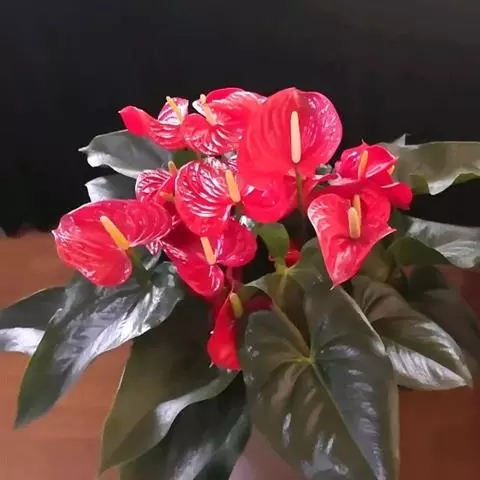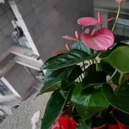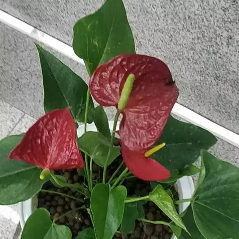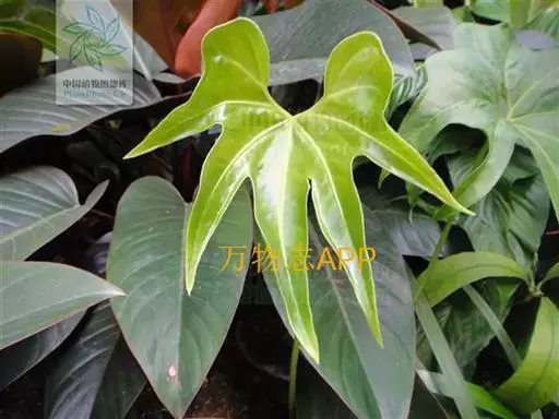 掌叶花烛 掌叶花烛既可观叶又可赏花的室内优秀盆栽植物。花开时,绿叶红花,佛焰苞肥厚硕大,色彩艳丽,光亮如漆。肉穗花序挺立于佛焰苞上,颇像彩色的烛台,异常艳丽、新奇。掌叶花烛花期可持续几周,是优良的盆花。不开花时,叶形优美,色泽嫩绿,又是极其优美、观赏价值高的观叶植物。常置于家庭案几、客厅墙角的几架上及会议室、饭店雅间摆放,是上等的室内绿化、美化观赏植物,深受人们喜爱。