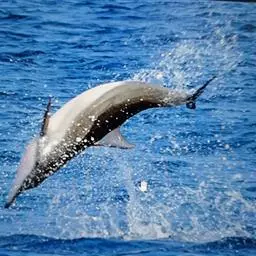 真海豚,身体细而流线型。体色十分复杂而独特,通常十字交叉型,黄褐色在前灰色在后,背面黑色向下延伸,…