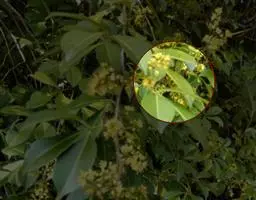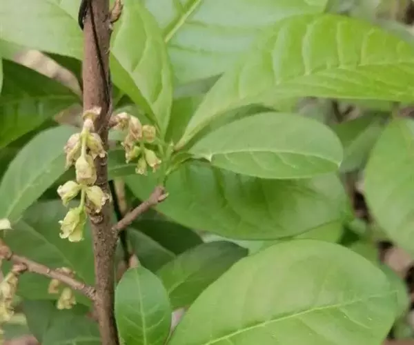 雄花序长2-5厘米;花序轴纤细,初时被毛;花梗基部有苞片1片,苞片阔卵形,两端急尖,内拱,膜质,有中脉,散生油点,长2-3毫米;萼片甚细小;花瓣比苞片小,狭长圆形,上部较宽,有3(-5)脉;雄蕊比花瓣短,与花瓣互生,插生于明显的花盘基部四周,花盘近于正方形,花丝线状,花药广椭圆形;雌花的萼片及花瓣形状与大小均与雄花近似,4个靠合的心皮圆球形,花柱短,粘合,柱头头状。成熟分果瓣阔椭圆形,干后暗褐色,径6-8毫米,每分果瓣由顶端起沿腹及背缝线开裂,内有近圆形的种子1粒。花期4-5月,果期9-11月。