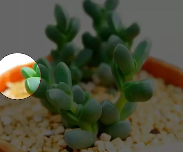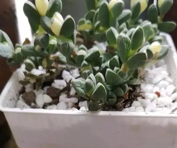 五十铃玉是番杏科窗玉属的多年生肉质植物,别名有“棒叶花”“婴儿脚趾”。植株高5厘米,叶片淡绿色,肉质,…