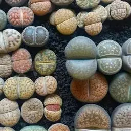 生石花,番杏科生石花属多年生肉质草本植物。植株几乎无茎;花朵较大,颜色艳丽,呈多边形,…