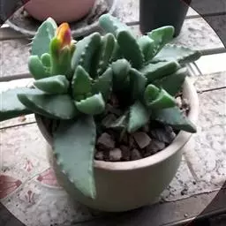 鹿角海棠(学名:Astridia velutina (L.Bolus) Dinter)是番杏科,鹿角海棠属多年生肉质灌木,叶粉绿色,高度肉质,基部联合对生,具三棱,全株密被极细短绒毛;花白或粉红色,冬季开花。