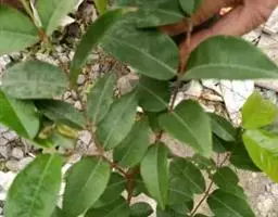 叶片纸质,卵形至卵状披针形,长3.2-4.2厘米,宽2.3-3厘米,先端渐尖或短尖,钝头,基部圆形或微心形,上面绿色发亮,下面颜色较浅,两面无毛,有无数透明腺点,侧脉每边约5条,稍明显,以近45度开角斜出,离边缘约2毫米处汇成边脉;叶柄极短,长约1.5毫米。