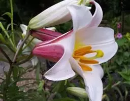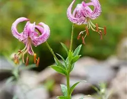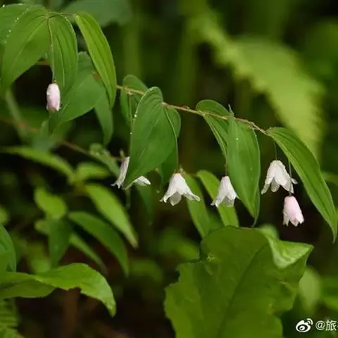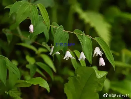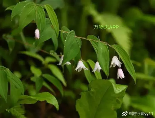 植株高20-50厘米;根状茎粗L5-2毫米。茎不分枝或中部以上分枝,光滑。叶披针形或卵状披针形,长2.5-8厘米,宽1.5-3厘米,先端渐尖,上部的叶有时呈镰刀形,叶背灰白色,基部圆形或心形,抱茎,全缘,花大,单生于叶腋,直径8.5-12毫米,下垂;花梗长2.5-4.5厘米,不具膝状关节;花被片卵状矩圆形,长8.5-10毫米,宽3-4毫米,粉红色或白色,具紫色斑点;雄蕊长3-3.5毫米;花药箭形,先端钝圆,比花丝长;花丝扁,向基部变宽;子房直径约1-1.5毫米,花柱细长,长5-6毫米,柱头先端3裂,长约1毫米,裂片向外反卷。浆果直径5-6毫米。花期6月,果期8-9月。