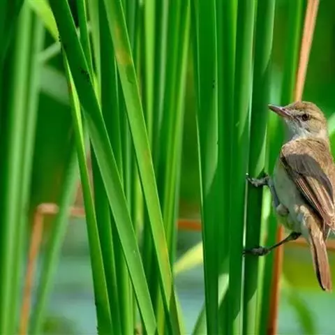 大苇莺:属小型鸟类,雌雄两性羽色相似。眉纹淡棕黄色;眼褐色;翅褐色具淡棕色的边缘;尾羽亦褐色,…