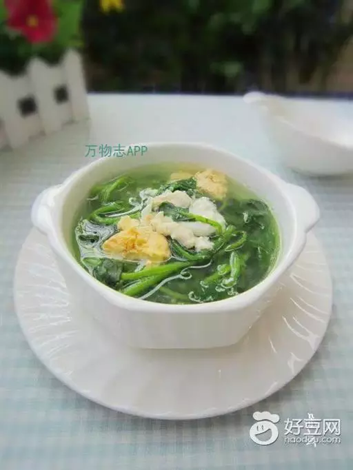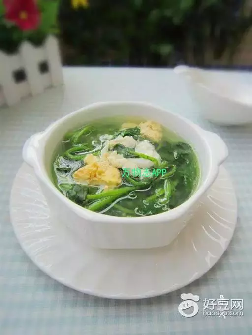 菠菜汤是用菠菜制作的一道汤系菜肴,制作工艺简单,可充分吸收菠菜的营养,清淡可口,有助于补铁、促血、补脑。