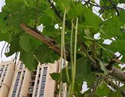 海南菜豆树在苗圃幼苗期如遇高温湿热的天气,猝倒病严重,应及时拔除或移开过密的幼苗,加强苗床的通风透气。