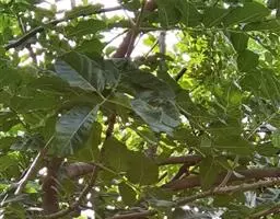叶为1至2回羽状复叶,有时仅有小叶5片;小叶纸质,长圆状卵形或卵形,长4-10cm,宽2.5-4.5cm,顶端渐尖,基部阔楔形,两面无毛,有时上面有极多数细小的斑点,侧脉每边5-6条,纤细,支脉稀疏,呈网状。