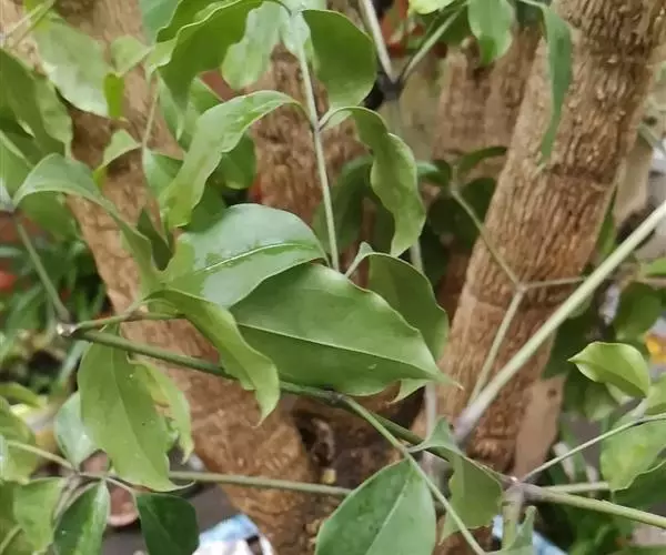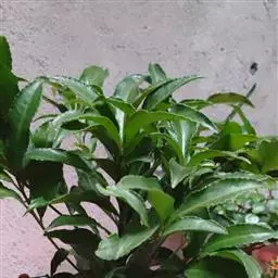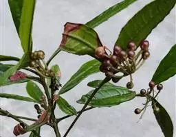 幼枝被绣色鳞片。叶长圆状披针形、椭圆状披针形或倒披针形,长8-16厘米,宽2-4厘米,全缘,下面稍被鳞片;叶柄长0.5-1厘米,幼时被鳞片。聚伞花序或亚伞形花序,腋生,稀着生于侧生花枝顶端,长3-5厘米。