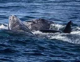 在东北太平洋(西尔斯1998年报告)。蓝鲸的天敌是逆戟鲸。Calambokidis等人(1990年)调查发现25%的成年蓝鲸都有逆戟鲸攻击留下的伤痕。